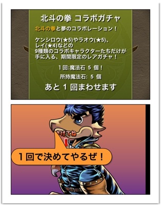 北斗の拳 コラボガチャ 1回だけ引きます