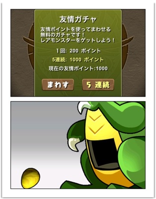 友情ポイント1000で1回できるので1度だけ回してみたいと思います。