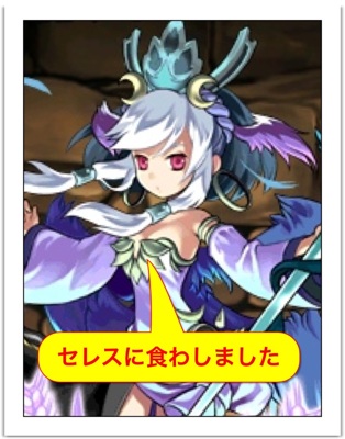 誰に食わせるか悩んだ結果、使用頻度が多く、スキル上げ素材がなかなか入手しにくいセレスに食わせました。