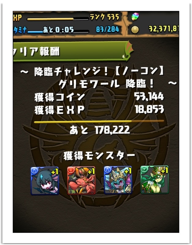 暗闇攻撃がなかなかイラつきましたが、パンドラで8つ消しでだいたい撃破できた。