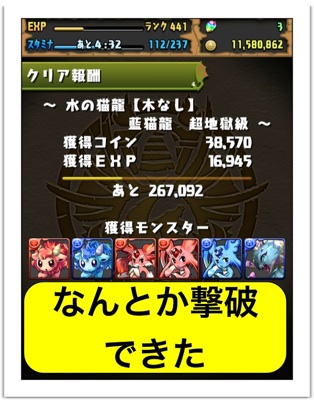 ギリギリの攻防でしたが、クリアできました。