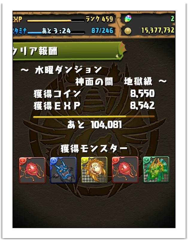 チャレンジダンジョンの5をクリア