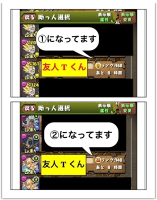 まずは、友人 T くんの「助っ人」表示を見ていきます。