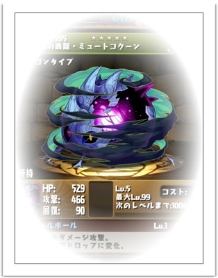 ミュートコクーンを進化させる場合、特定のドラゴン5体が必要というのがなかなかのネックでした。