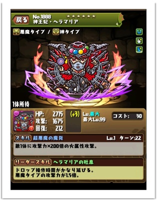 ステータスは、リーダースキルと攻撃力が若干変わったくらいで、とくに強調材料はありません。