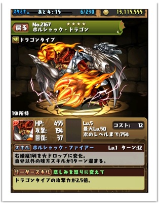 ドラゴンをほとんど放置しているので、こいつも倉庫の肥やしとなるかもしれません(; ̄ェ ̄)